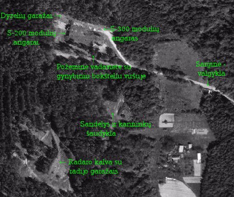 Požeminė vadavietė susisiekė su mobiliųjų S-200 (dešinėje), S-300 (kairiau) modulių angarais, statmenai jiems (kairėje) buvo įrengti garažai dyzeliniams generatoriams.